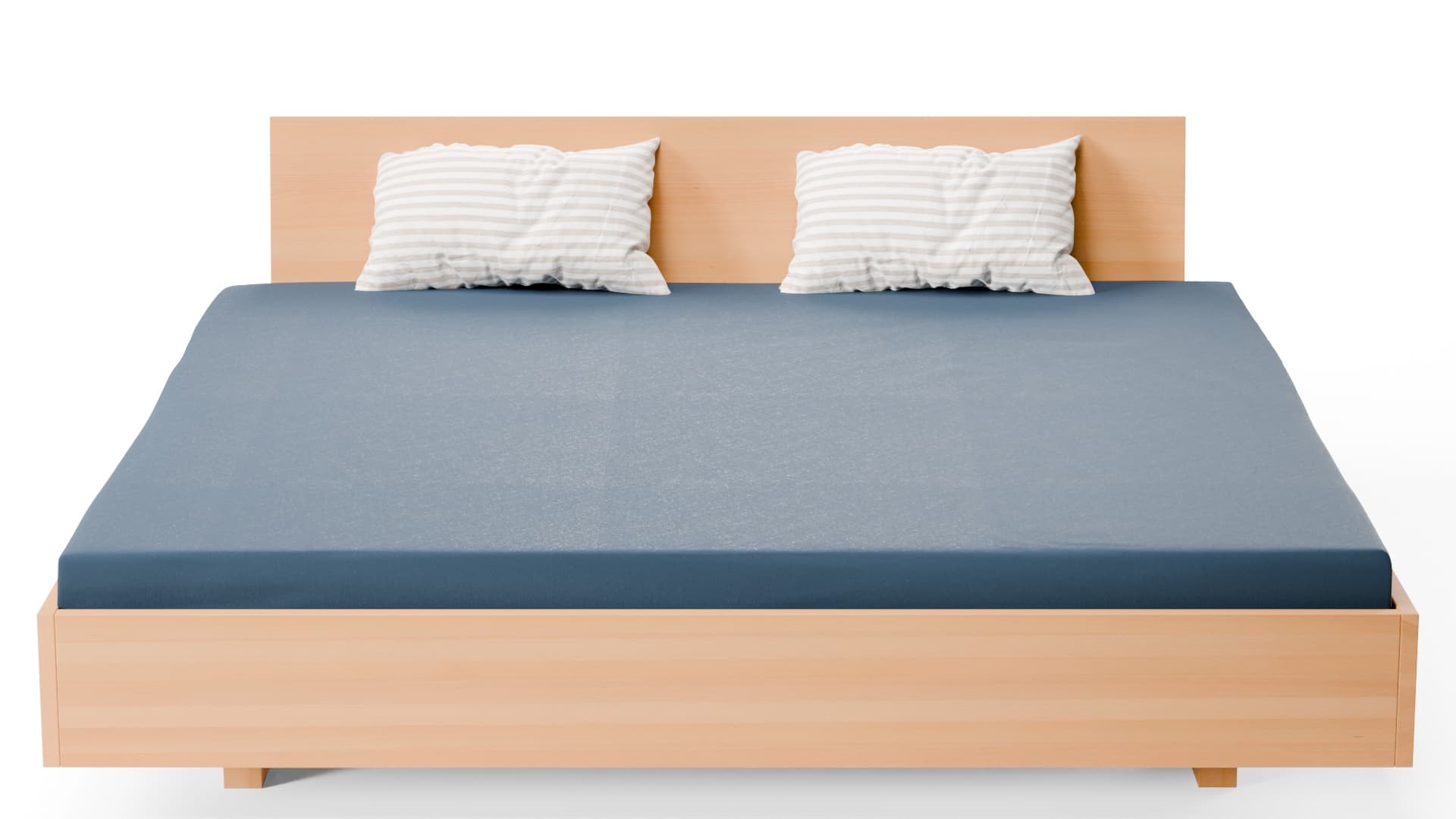 Ein Bett ausb Birke Schichtholz, das mit seinen Maßen von 200 x 200 cm sowohl Stabilität als auch eine schwebende Eleganz bietet.